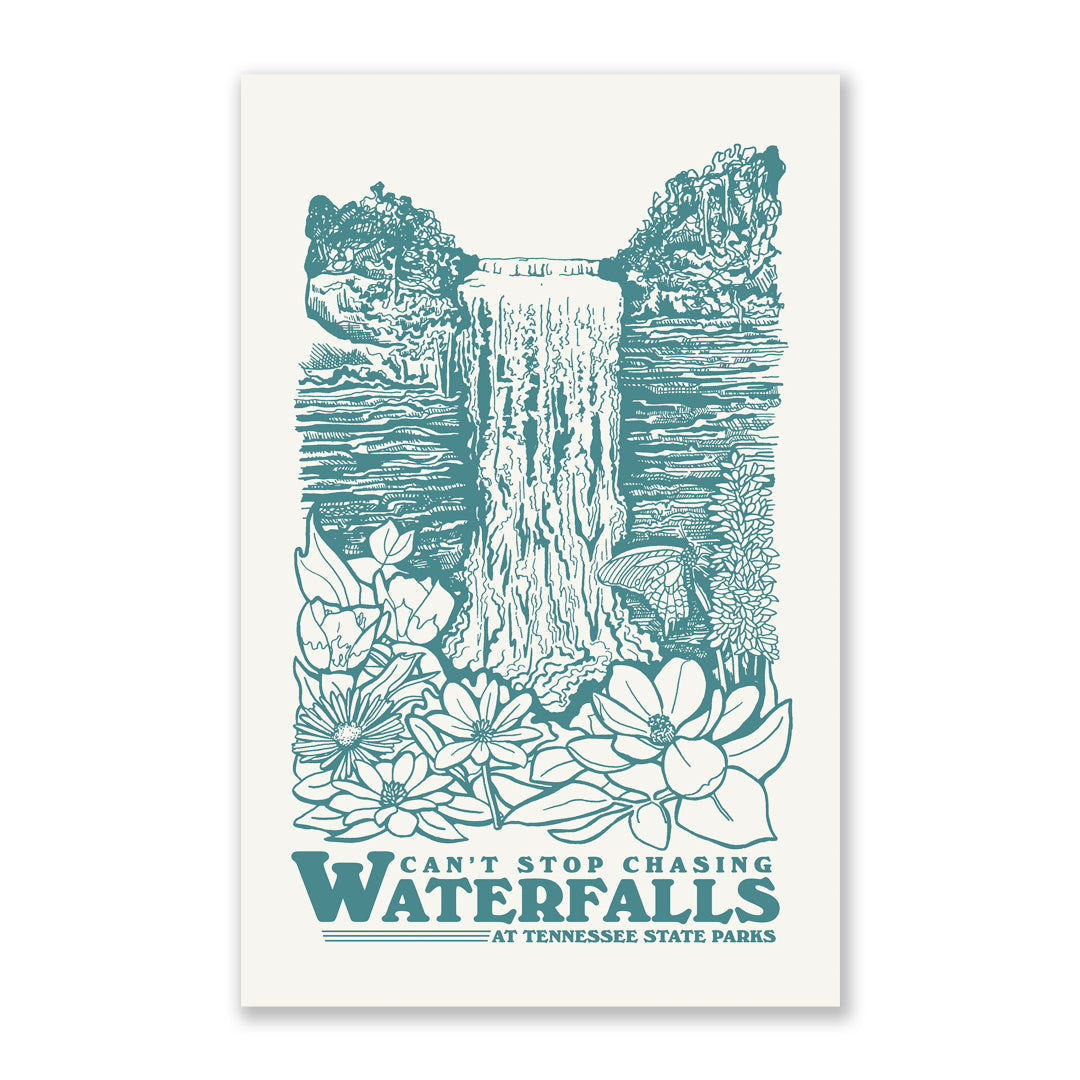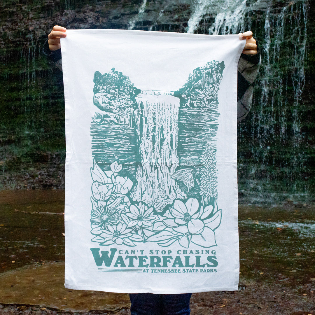 Do you have a tendency to chase waterfalls? Check out our new "Can't Stop Chasing Waterfalls" design! You can share your love of Tennessee's finest falls with a new tee, sticker, and tea towel.